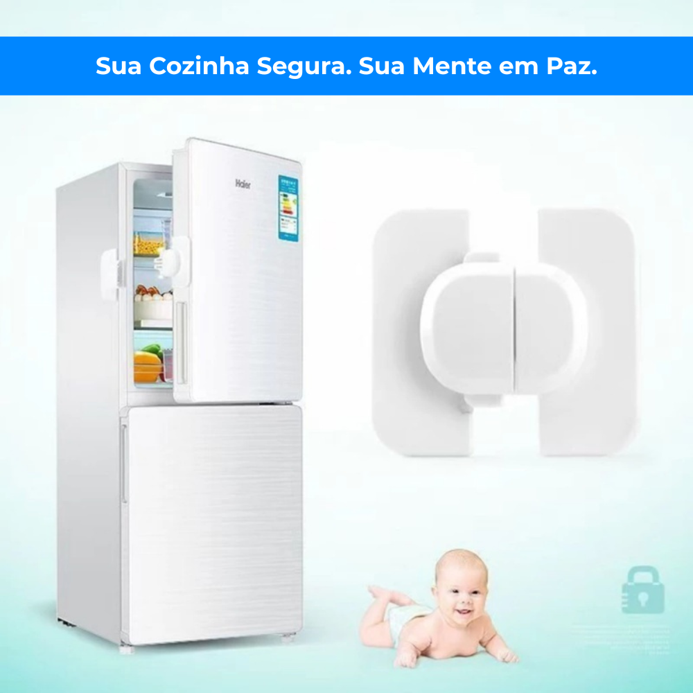 R: Ele é perfeito para freezers, armários baixos (especialmente os que guardam produtos de limpeza), gavetas, micro-ondas e fornos. É uma solução de segurança versátil para toda a casa.